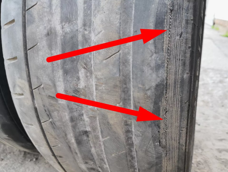 • Торчащие капроновые или стальные нити корда на поверхности или боковинах шин свидетельствуют о незамедлительной необходимости замены шин, ведь их обрыв ведет к разрушению всего каркаса шины