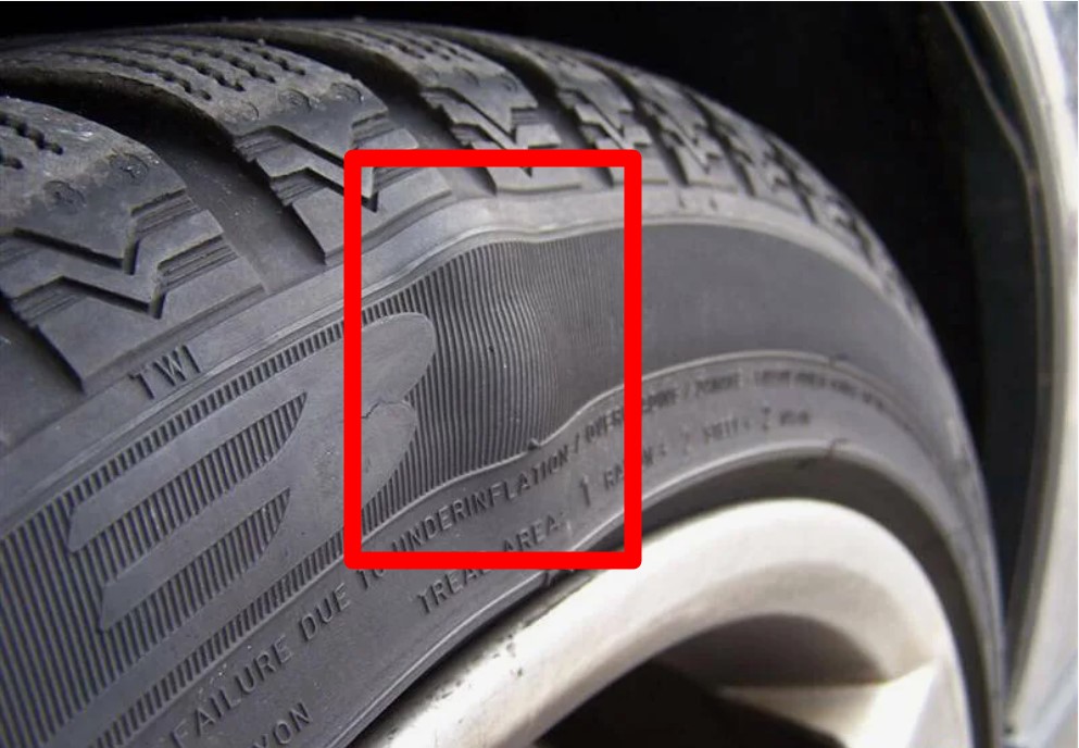 • Выпуклости или «грыжи» по бокам шин